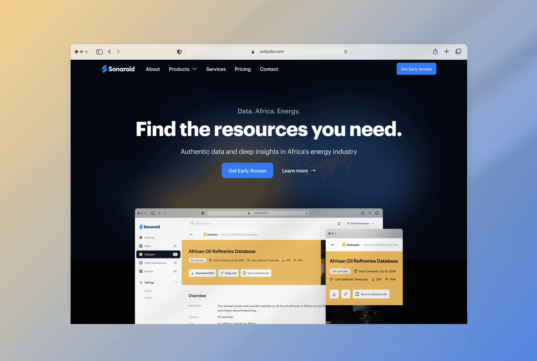 Sonaroid is a SaaS platform that streamlines access to structured, real-time data and analytics for Africa’s energy sector. It enables consumers to explore rich datasets, reports, and dashboards for better decision-making, while offering contributors a way to share data and earn revenue.